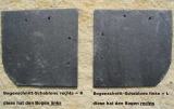 Eine rechte Bogenschnittschablone, die also den zugeschnittenen Bogen auf der linken Seite hat, wird für eine Deckung von links nach rechts verwendet. Eine linke Bogenschnittschablone wird folgerichtig für eine Deckung von rechts nach links verwendet.