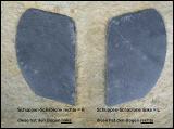 Eine rechte Schuppenschablone, die also den zugeschnittenen Bogen auf der linken Seite hat, wird für eine Deckung von links nach rechts verwendet. Eine linke Schuppenschablone wird folgerichtig für eine Deckung von rechts nach links verwendet. |
